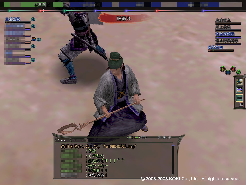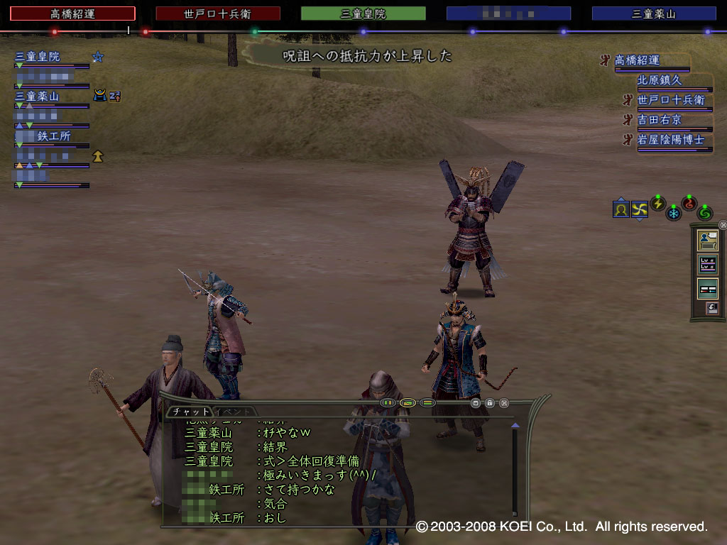 [ PlayStation 2版 ] Ver1.37から1.40への変更 [ Windows版 ] Ver1.52から1.53への変更 不具合修正 以下の不具合を修正しました。 ・2008年2月27日時点の本サービスに適用されている不具合修正を反映しました ・一部のNPCに「乾坤一擲」を使用した場合、モデルが不正に表示される場合があった (Windows版のみ) ・以下の頭装備を装備中、一部のシーンで髪型が正常に表示されない場合があった (Windows版のみ) ・合戦陣笠・壱、弐、参、四 ・戦用塗笠 ・隠れ里防人帽 ・狢笠 ・総漆二度塗り陣笠 ・旅人陣笠 機能変更 以下の機能を変更しました。 ・2008年2月27日時点の本サービスに適用されている機能変更を反映しました ・期間限定(2/28~3/19)でテストワールドを増設しました この期間、既存のテストワールドの名称は「テスト1」となり、 新しいテストワールド「テスト2」ワールドが開設されます 「テスト1」「テスト2」には、 既存のテストワールドのキャラクターデータ・国勢がコピーされています 3/19に、「テスト1」の名称を「テストワールド」に戻し、「テスト2」は閉鎖いたします ・テストワールドで「もの知り爺」から配布するテスト用アイテムを更新しました 「争覇の章」テストに対応した性能の装備と、冒険を補助する消費アイテムとなります また、技能目録を使用すると皆伝するようにしました ・テストワールドでの@モバイルサービスの挙動を変更しました 知行システムの変更に伴い、 テストワールドの@モバイルサービスでは知行をご利用いただけなくなります ・テストワールドでこれまでに獲得されていた流派技能をすべて削除しました ◆下記の内容は、「信長の野望Online 争覇の章」発売時に実施される 内容のテスト項目になります。詳細は こちら もご参照ください また、週末(2月29日・3月1日・2日、3月7日・8日・9日)にテストワールドで 大決戦と上覧武術大会のイベントを開催いたします。 詳細は こちら でご確認ください ・「大決戦」を実装しました レベル50以上のキャラクターが合戦場のNPC「軍監」に話しかけることで、 「大決戦」に参加できます 「大決戦」には、両軍100名ずつが参加可能で、参加者の数によって最大3つまで複製されます 「大決戦」は合戦の発生している週の金・土・日曜日の21時から開催されます 以下いずれかの条件を満たすことで終了します ・一定時間(通常3時間)の経過 ・大名の敗走 ・一方の勢力の戦果が1000以上であり、かつ戦果差が2倍以上開いている ※テストワールドでは、 2月29日21時~・3月1日21時~・3月2日21時~の3回に限っての開催となります ※ワールド「テスト1」だけでは参加を希望される方全員を収容できない可能性がありますので、「テスト2」をご利用ください ・従来の合戦を「陣取戦」として整理し、開催期間とルールを調整しました ・「陣取戦」に「功名帳クエスト」を導入しました さまざまな小目標を達成することで「功名手柄」を獲得し、 合戦終了後に報酬を受け取ることができます ・陣取戦の終了条件を、一定時間の経過のみとしました ・「合戦見取図」を実装しました 大決戦および陣取戦の行われているゾーンで、「地図」コマンドを実行することで 地形・要害・武将の状況・プレイヤーの分布を確認することができます ・所属部隊長の状況によらず参陣を可能としました ・国勢において「国力」の概念を変更し、「最大国力」「現在国力」としました これに伴い、国力減少・回復処理を調整しました ・「上覧武術大会」を実装しました 各町の道場付近にいるNPC「武天翁」に話しかけ、 「妙院郷」に移動することで説明を受けることができます 妙院郷にいるNPC「上覧札屋」でアイテムを購入することで参加・観戦が可能になります ※テストワールドでは、2/28~3/6は参加受付期間、3/7~3/9は本戦開催期間となります ※上覧武術大会のテストを行っていただいた方には、 本サービスワールドでアイテムを授与いたしますので、ぜひご参加ください ・「天下一品」の仕様を変更しました 「上覧武術大会」の入賞報酬とし、アイテムと性能を一新しました これに伴い、旧来の天下一品アイテムの入手を停止し、所持条件を修正しました 一定期間後、旧来の天下一品アイテムはワールドから消滅します ・勢力間の友好度を撤廃しました 友好度を上下させる「友好外交」「他国侵攻」献策、および一部のクエストを廃止しました 同盟以外の勢力間の関係は、友好度ではなく同盟・合戦の履歴によって決定され、 一定期間の経過によって変化します ・「同盟」の仕様を変更しました 寄合長での「献策」コマンドを用いて、同盟の申し入れ先を選択し、 相手勢力での献策で承認されることによって同盟が成立します 成立した同盟は、毎週の献策で継続が決議されることによって維持されます ・合戦発生の仕様を調整しました ・友好度の撤廃に伴い、自国・同盟国以外の進軍可能な国すべてを対象に選ぶことができます ・1勢力につき、最大2箇所で合戦が同時に発生するよ